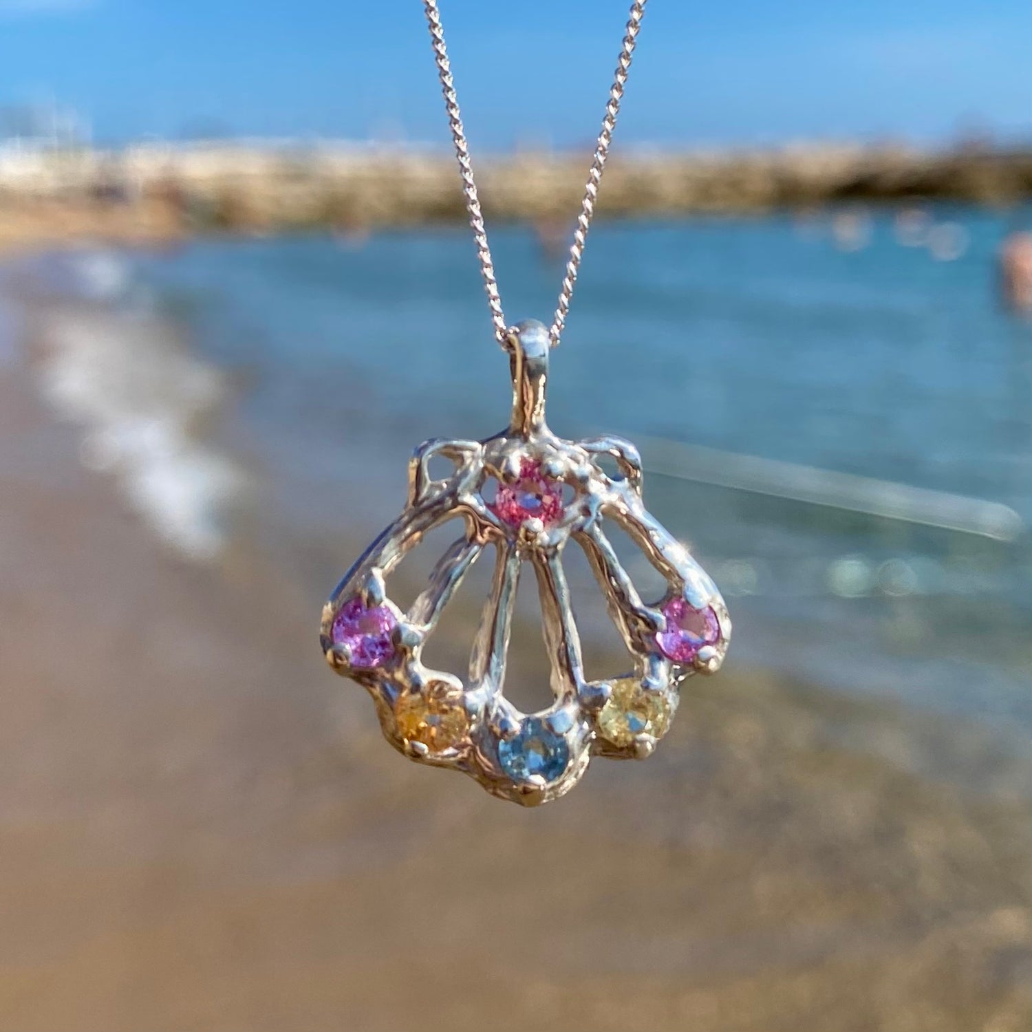 ENCHANTED SEASHELL Necklace, pastel sapphires