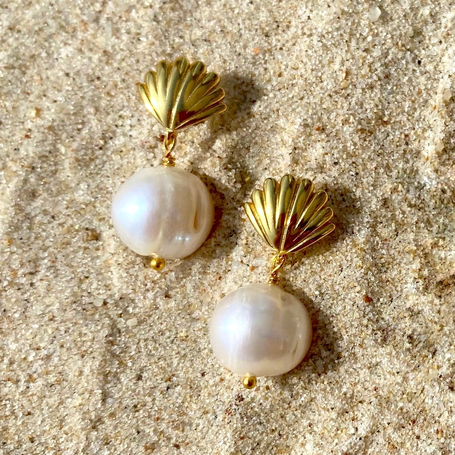 Timeless and sun-kissed, the Antibes Seashell Earrings capture the effortless elegance of the French Riviera. Each earring features a delicate gold seashell stud, a nod to treasures collected along the shoreline. From it hangs a luminous freshwater pearl, swaying gently like a drop of seafoam caught in motion.