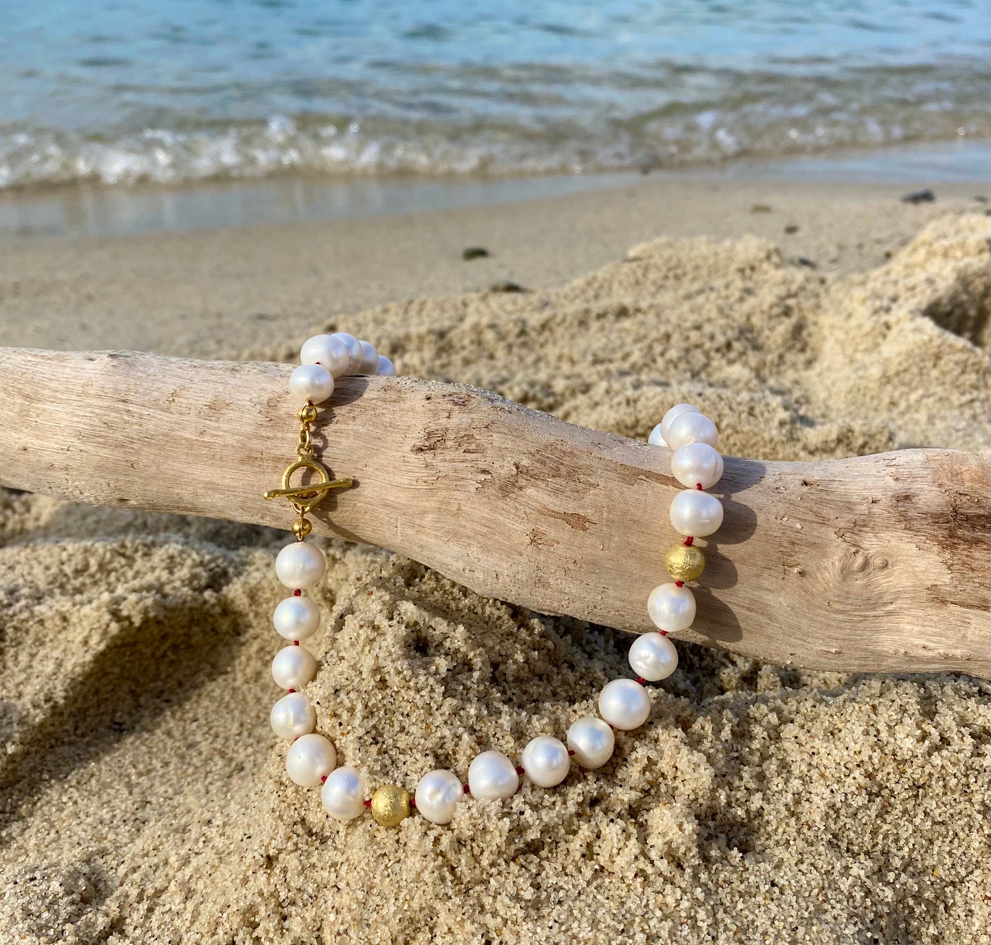 This modern take on the classic pearl necklace is hand knotted on two strands of natural silk thread. Inspired by the glamour and elegance of Cannes, our pearl collier features 10mm freshwater pearls and 925 sterling silver gold plated beads.