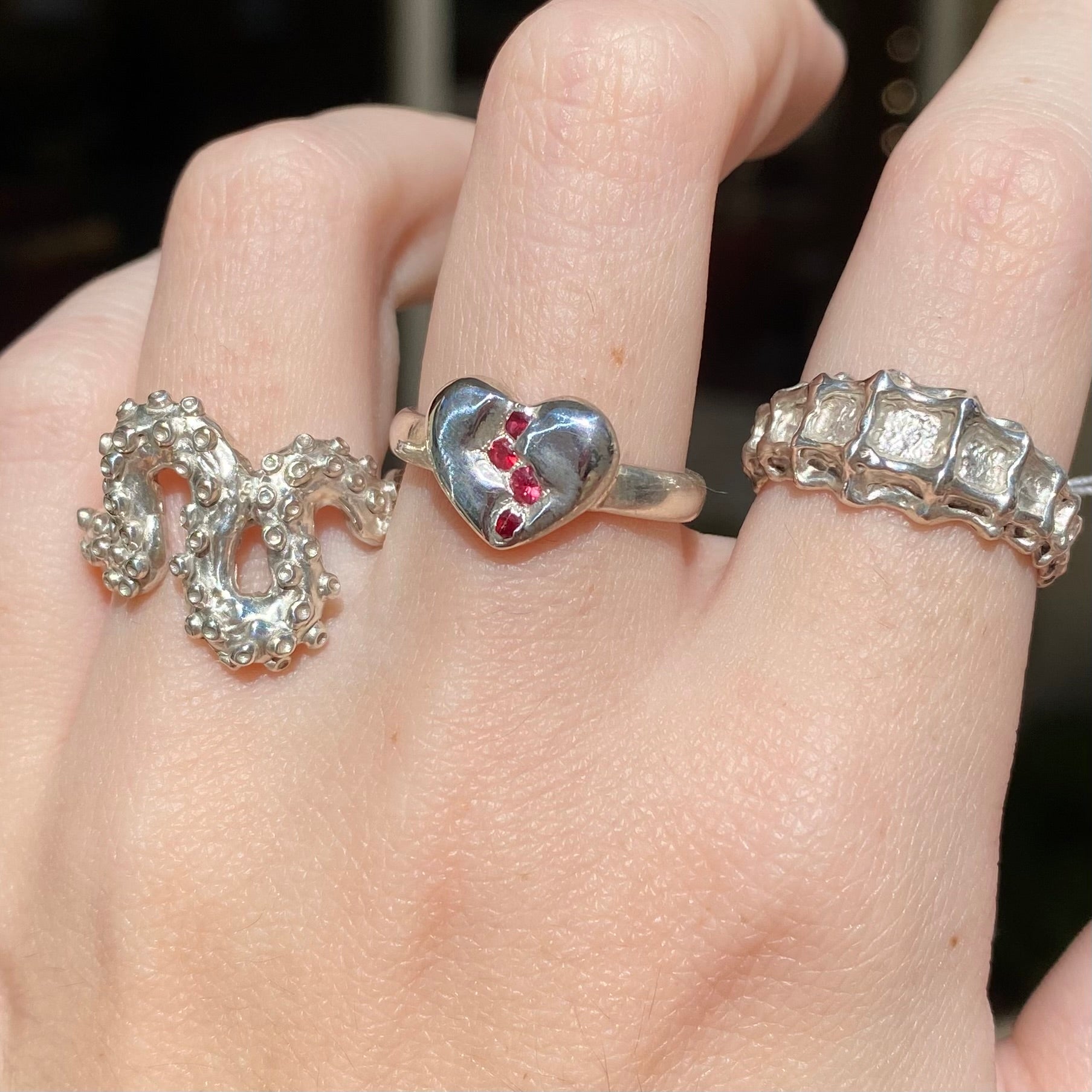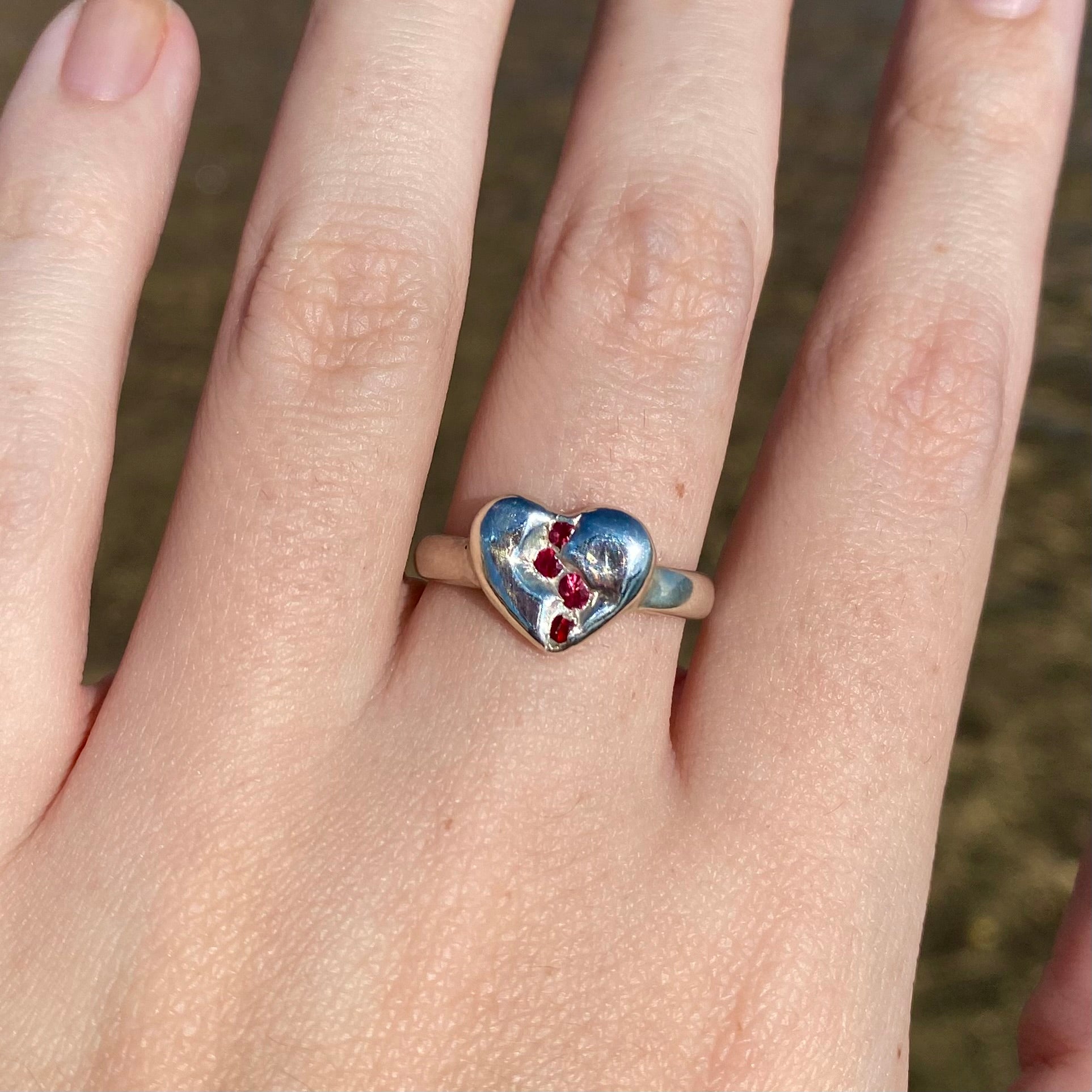 Set on a sleek, minimalist band, the design balances refinement with emotion. The smooth ring band frames the heart, letting the revealed gems take center stage while ensuring a timeless elegance suitable for everyday wear.