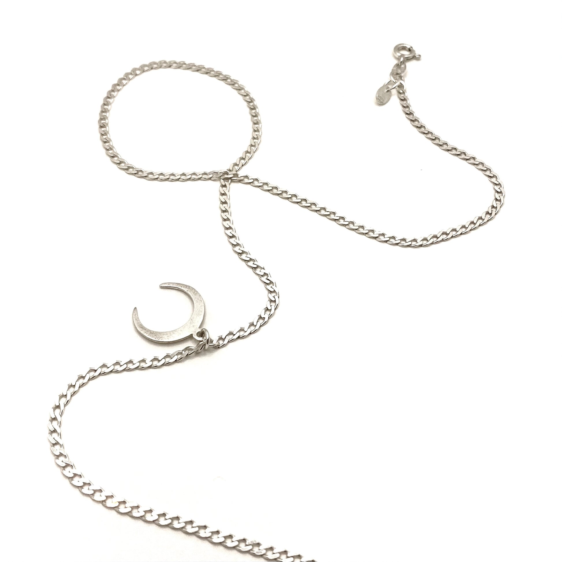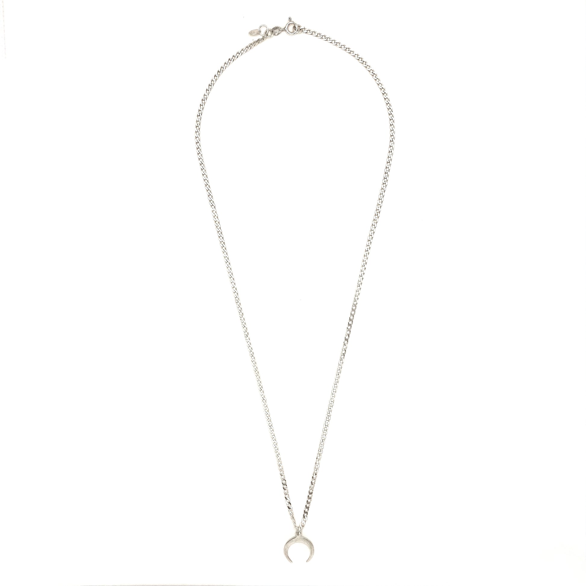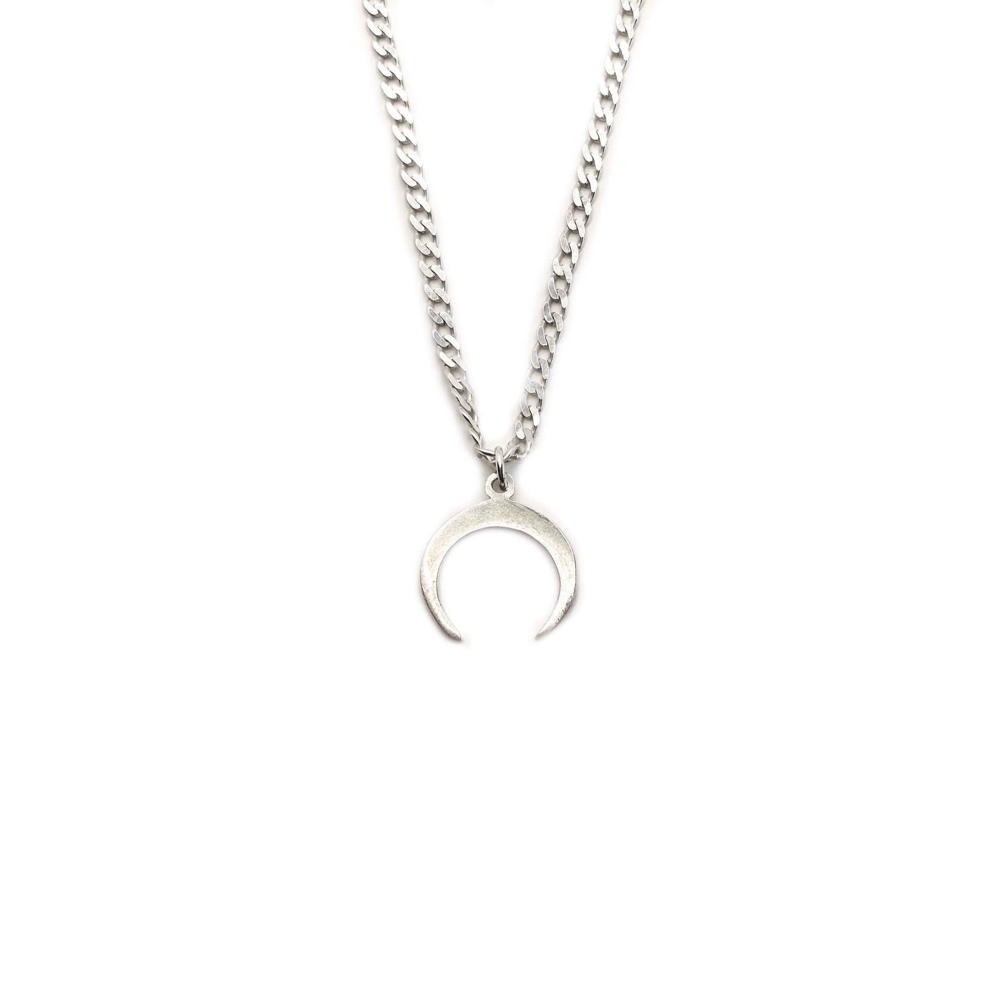 This solid silver chain features a cresent moon, representing change, growth and creativity. Wear it on its own for a clean cut, distinct look or combine it with other pieces for an expressive layered look.