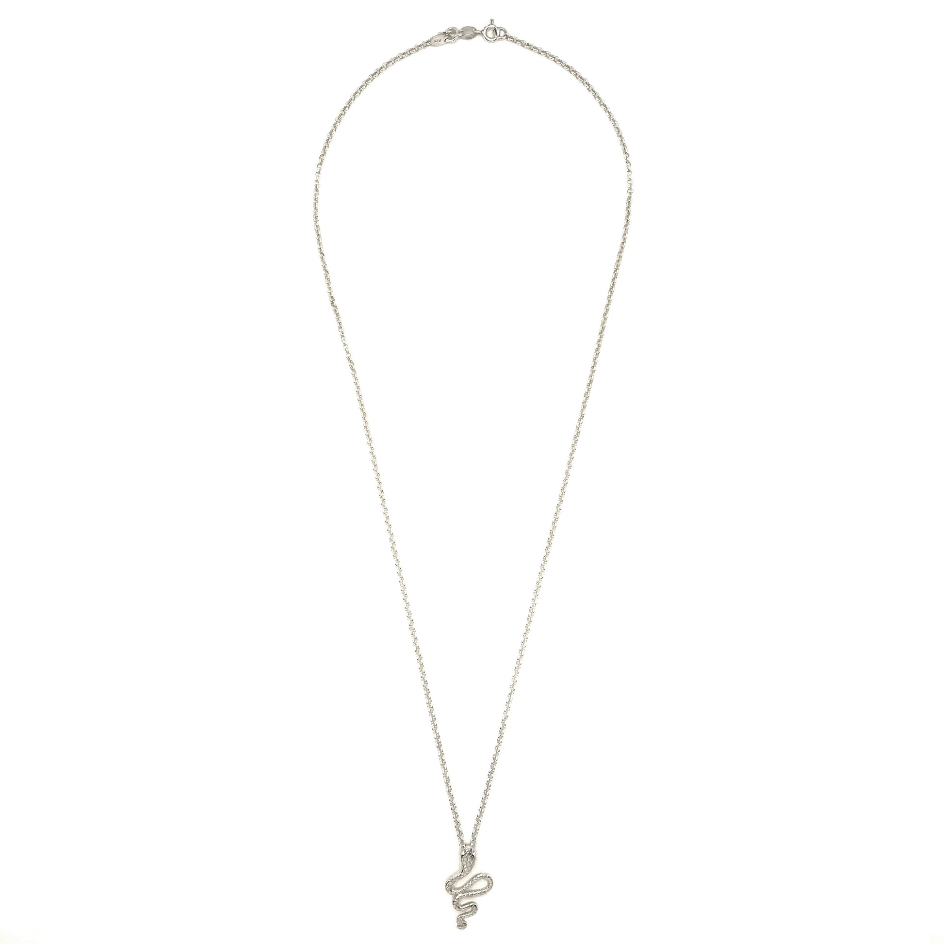 A detailed snake pendant is the center piece of this 925 sterling silver Necklace. The snake is one of the oldest and most widespread mythological symbols, representing desire, temptation, transformation and immortality.